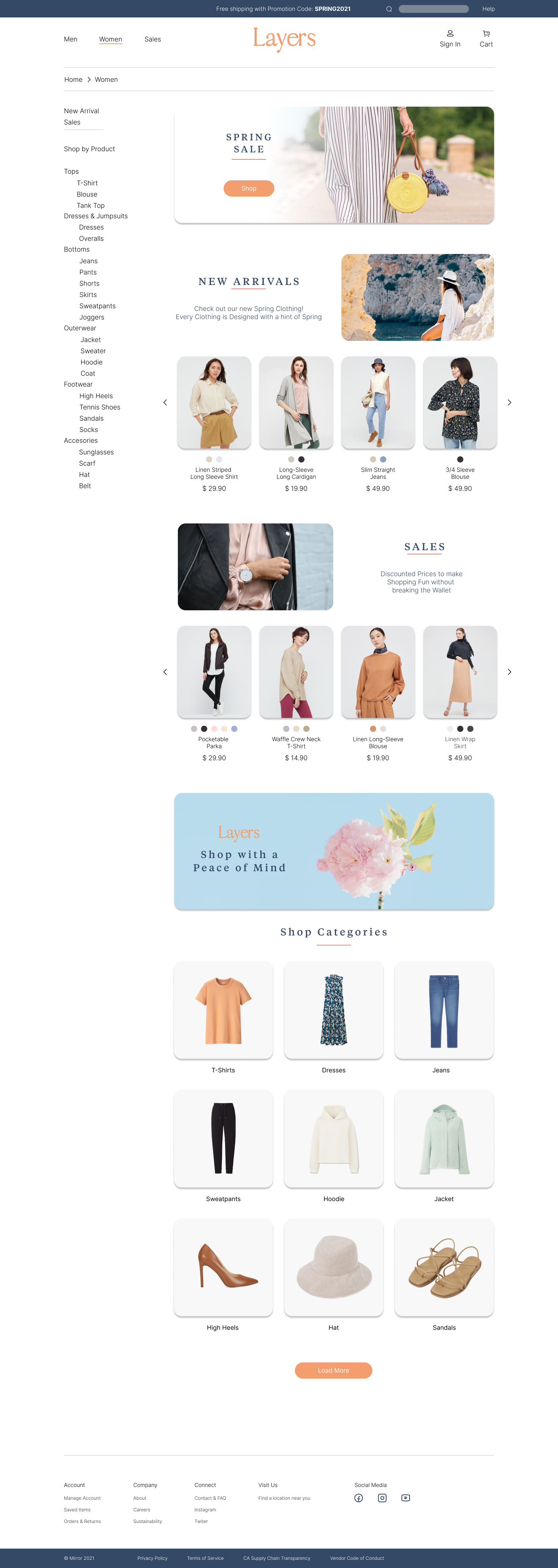 Design and create a functioning prototype of a responsive website for Layer's e-commerce clothing store.