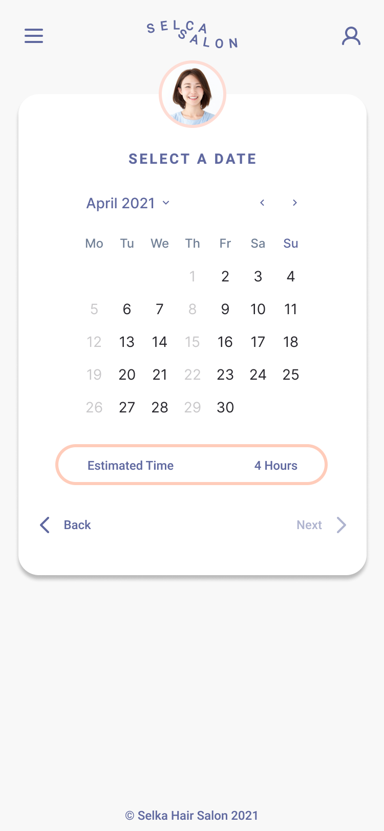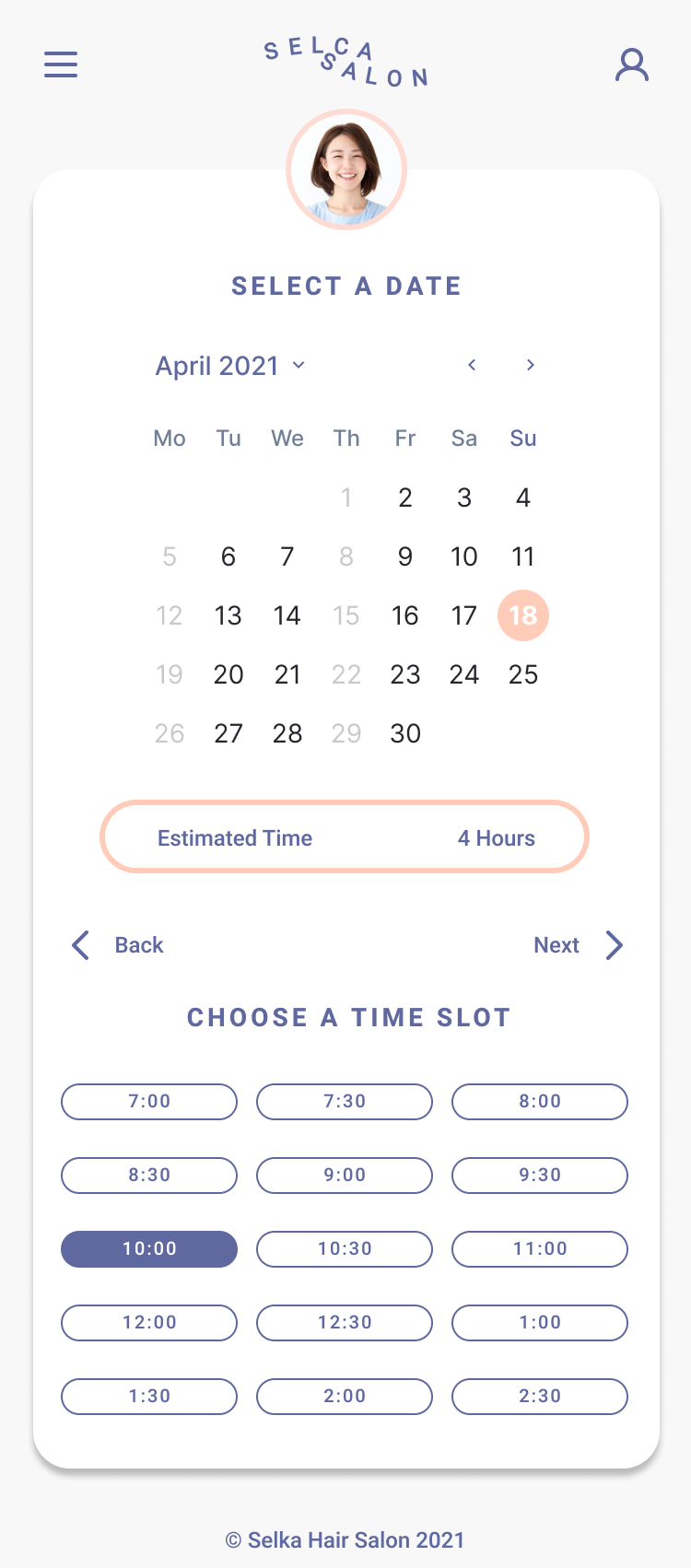 High Fidelity Prototype of Selca Hair Studio